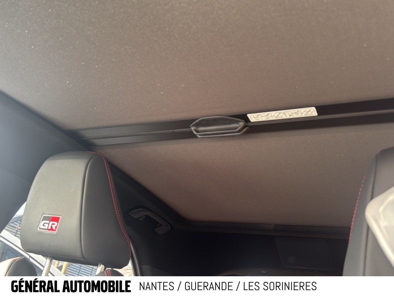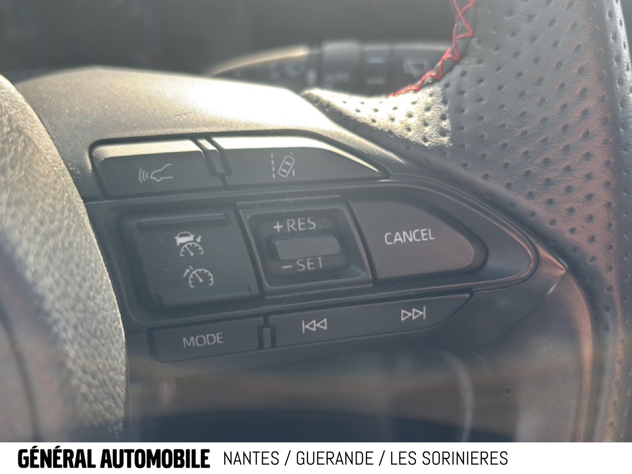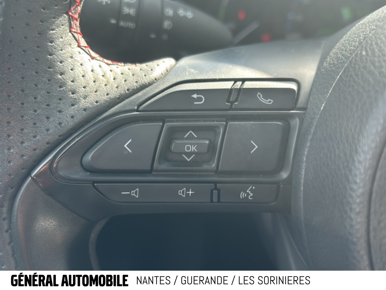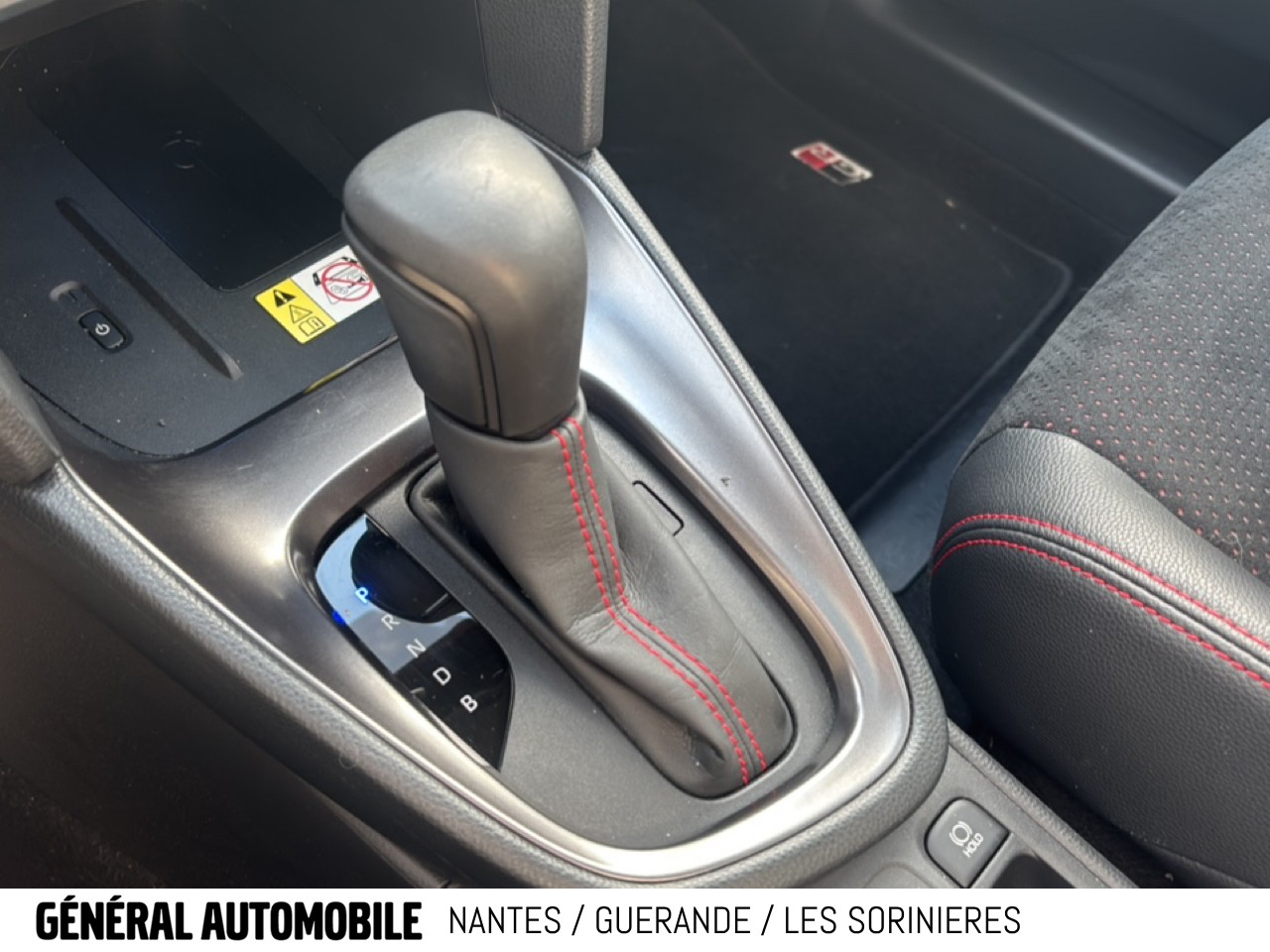 Sellerie Ultrasuede noir perforé rouge avec renforts latéraux en similicuir, surpiqûres rouges et logo